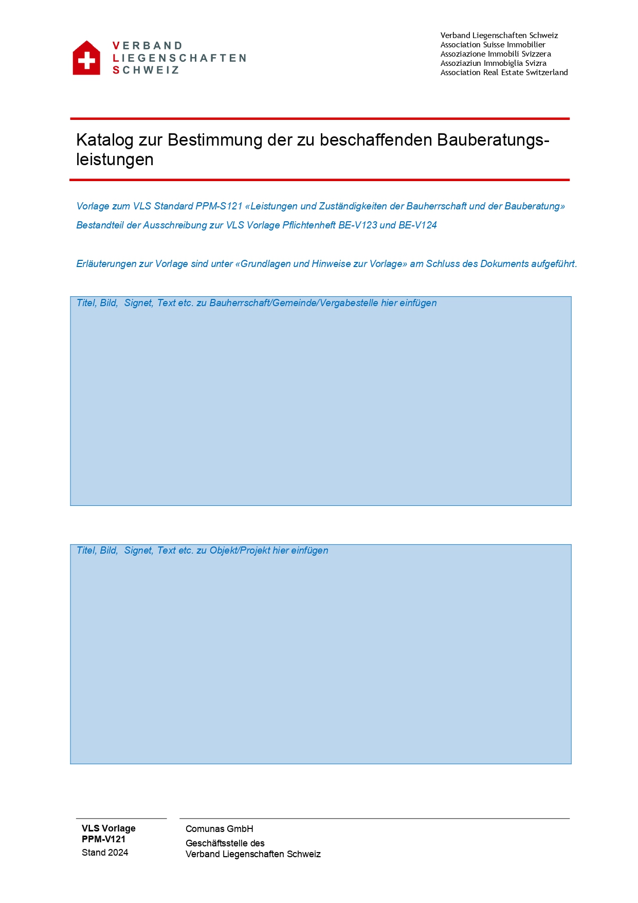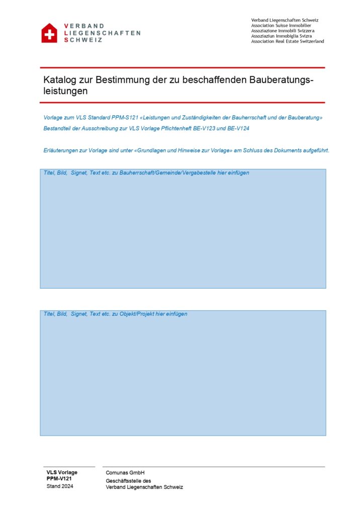 Vorlage zum VLS Standard PPM-S121 «Leistungen und Zuständigkeiten der Bauherrschaft und der Bauberatung»